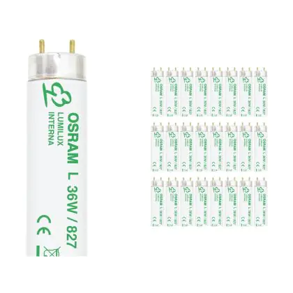 I Confezione Multipack 25x Osram Lumilux Interna T8 36W - 827 Bianco Molto Caldo | 120cm sono i tubi più comuni e tra le lampade più vendute nel mondo. Questi tubi T8 (TL-D per Philips) hanno una lunghezza la quale corrisponde alla potenza di 36W.