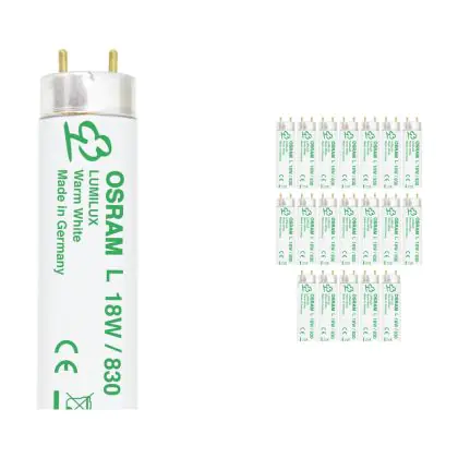 I Confezione Multipack 25x Osram T8 Lumilux 18W - 830 Luce Calda | 60cm sono i tubi più comuni e tra le lampade più vendute nel mondo. Questi tubi T8 (TL-D per Philips) hanno una lunghezza la quale corrisponde alla potenza di 18W.