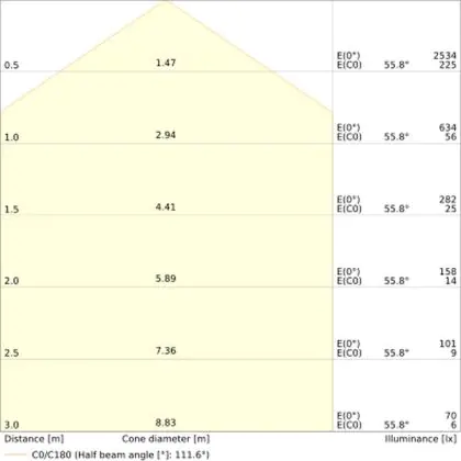 Il codice colore è una combinazione di resa cromatica (CRI) e colore della luce (Kelvin). La prima cifra indica la resa cromatica (1 = resa del colore molto bassa, 9 = massima resa del colore), mentre la seconda e la terza si riferiscono al colore della luce. Esempio: il codice colore 830 indica una buona resa cromatica (8) e luce bianca calda (3000K). |
