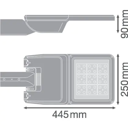Descrizione Ledvance Illuminazione stradale LED Flex Grande RV25ST Grigio 13W 1780lm 25x145D - 740 Bianco Freddo | IP66 – Asimmetrico
