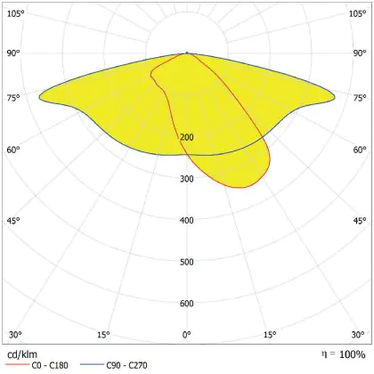 Questa lampada LED viene spesso usata per illuminare in modo ottimale aree piuttosto grandi. A questo scopo, serve un apparecchio che abbia alto rendimento luminoso in quanto maggiore è il rendimento luminoso, più grande è la superficie illuminata. Questo apparecchio emette una luce con potenza luminosa di 5850 lm e il rapporto lumen/watt di efficienza luminosa è di lm/W. Questo significa che l'apparecchio consuma poca energia per la quantità di luce che genera!