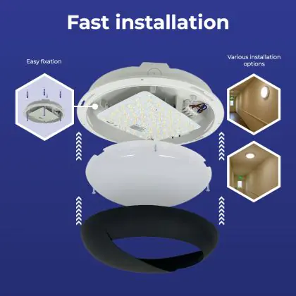 Prima di sostituire un vecchio apparecchio di illuminazione con uno nuovo è sempre consigliabile controllare le dimensioni. Installare questa plafoniera LED è molto facile: basta leggere attentamente le istruzioni e utilizzare il materiale di installazione fornito (viti, tasselli, ecc.). Se hai dubbi sull’installazione consulta un installatore certificato. Per questa lampada offriamo una garanzia di 6 anni.