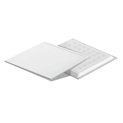 In pochi minuti dall'accensione questo pannello LED raggiungela luminosità massima di 5480 lm. La lente microprismatizzata consente una diffusione luminosa uniforme. È la soluzione ideale per l'illuminazione professionale di spazi ampi con soffitti alti.