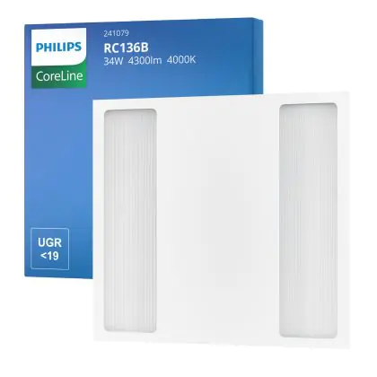Descrizione Philips Pannello A LED Coreline RC136B 25/34W 3100-4300lm - 840 Bianco Freddo | 60x60cm - UGR <19 - Potenza Selezionabile - Emergenza 3H - W3