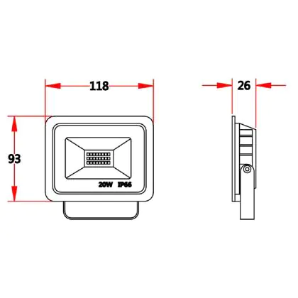 Descrizione Proiettore LED 20W 2000lm 100D - 840 Bianco Freddo | IP66 - Simmetrico